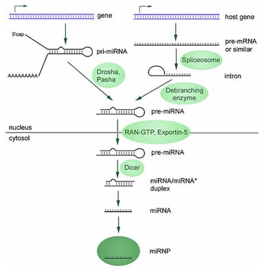 - 142 Kusenda B, Mraz M, Mayer J, Pospisilova S. MicroRNA biogenesis, functionality and cancer relevance. Biomed Pap Med Fac Univ Palacky Olomouc Czech Repub. 2006 Nov;150(2):205-15. [PUBMED]