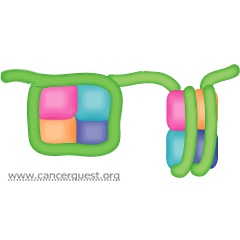 Our cells constantly monitor their surroundings for the presence (or sometimes an absence) of regulatory molecules in the environment. These signals control decisions regarding cell division, movement and even death. One way in which the external environment is monitored is through receptor molecules located in the membrane of the cell. These proteins act like cellular antennas. Upon binding of a signal molecule, the receptor molecules transmit information to other molecules within the cytoplasm and nucleus resulting in an appropriate response. An example is the HER-2/neu oncogene product, that functions as a growth factor receptor. This gene is discussed more in the section on oncogenes.15 Many different diseases, including cancer, can be traced back to dysfunctional signaling pathways. In cancer these malfunctions may lead to unregulated cell division and the development of tumors. Particular signaling pathways are often affected in a given type of cancer. Drugs designed to inhibit these specific signaling pathways promise to inhibit cancer growth without harming normal cells. Blockage of the receptors is an active area of clinical investigation. 15