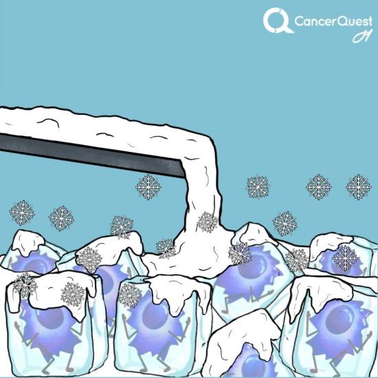 Cryotherapy uses a metal rod filled with extremely cold liquid to freeze cancer cells.