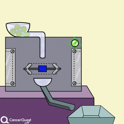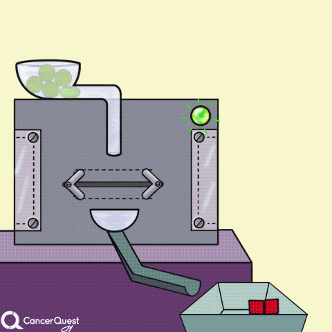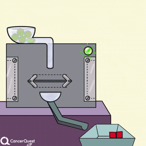 Hormones are signals made in one cell that affect different cells. In the animation above, the green chemical is turned into the red hormone by a protein machine (enzyme). Some hormones can cause cancer cells to reproduce.