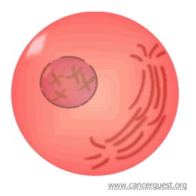 The protein strands that reach from one end of the cell to the other are called microtubules. These proteins are assembled and disassembled during the cell division process. They are the target of several different chemotherapy agents. Taxol®, a chemical derived from an extract of the yew tree, binds to the microtubules and does not allow them to disassemble. This causes the cells to fail in the mitosis process and die. Another class of chemotherapy agent, represented by vinblastine, has the opposite effect. These drugs don't allow the spindle fiber to form. The result is the same, as the cell division process is inhibited. More on Cancer Treatments.